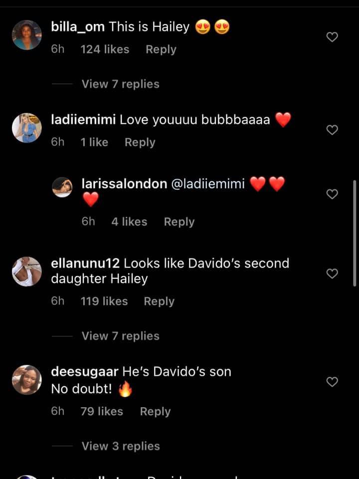 Fans of Davido, takes over the Instagram page of Larissa London, the alleged fourth baby mama of the Afrobeat Superstar to wish the little boy happy birthday and gush on her son’s resemblance with Davido.